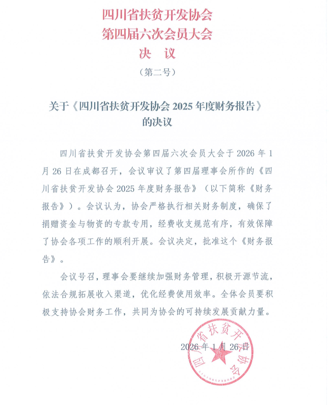 关于《四川省扶贫开发协会2025年度财务报告》 决议的公告