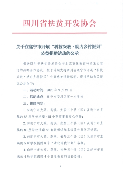 关于在遂宁市开展“科技兴教 助力乡村振兴”公益捐赠活动的公示